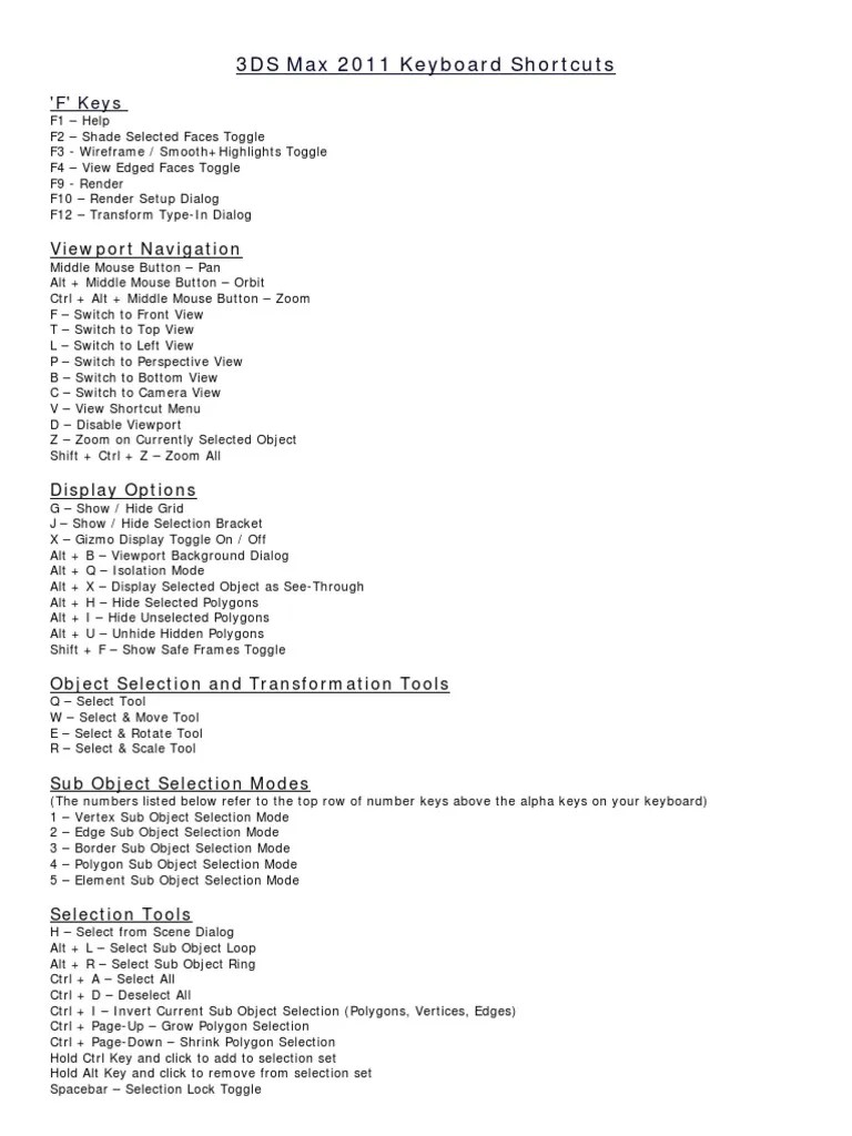 Lijsten 36 3Ds Max Shortcut Keys Pdf Vers